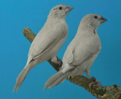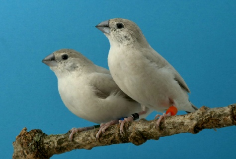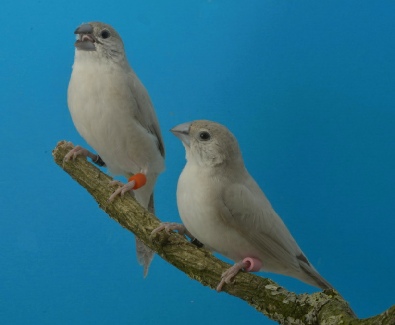 Links de onderkant van de staart van een Opaal wildkleur Loodbek en rechts de bovenzijde herkenbaar aan de witte stuit veren.