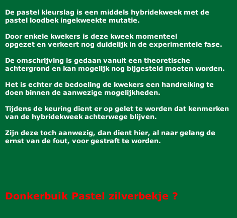 De overgang van licht bruine vleugelbocht naar het warm créme rugdek dient regelmatig en strak te verlopen. |